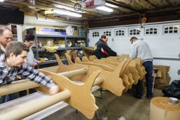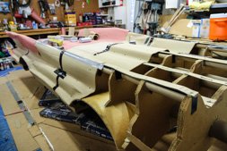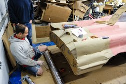 The Seminole Chief Ted Tsevis, had a vision of re-creating the 50th Anniversary rendition of the original 1966 Batmobile. This idea was definitely “Thinking outside the Box” as there were almost no 90 degree corners anywhere on this sled. Out of the nine years that I’ve been in the program, this sled was one of the most complex that I’ve had the honor to work on. Because most of sled consisted of curves, a sturdy skeleton had to be constructed. Later was wrapped using a one-sided flexible cardboard. It took 12 nights with between 5-6 dads at any given time to complete Ted’s vision. Attention to detail made the construction fun, as many of the dads had their own input and ideas on how to improve the overall appearance of the sled.