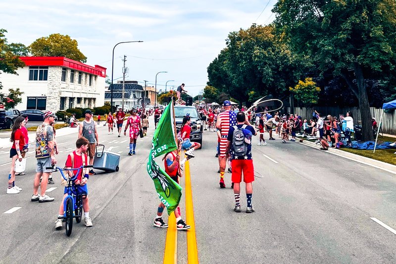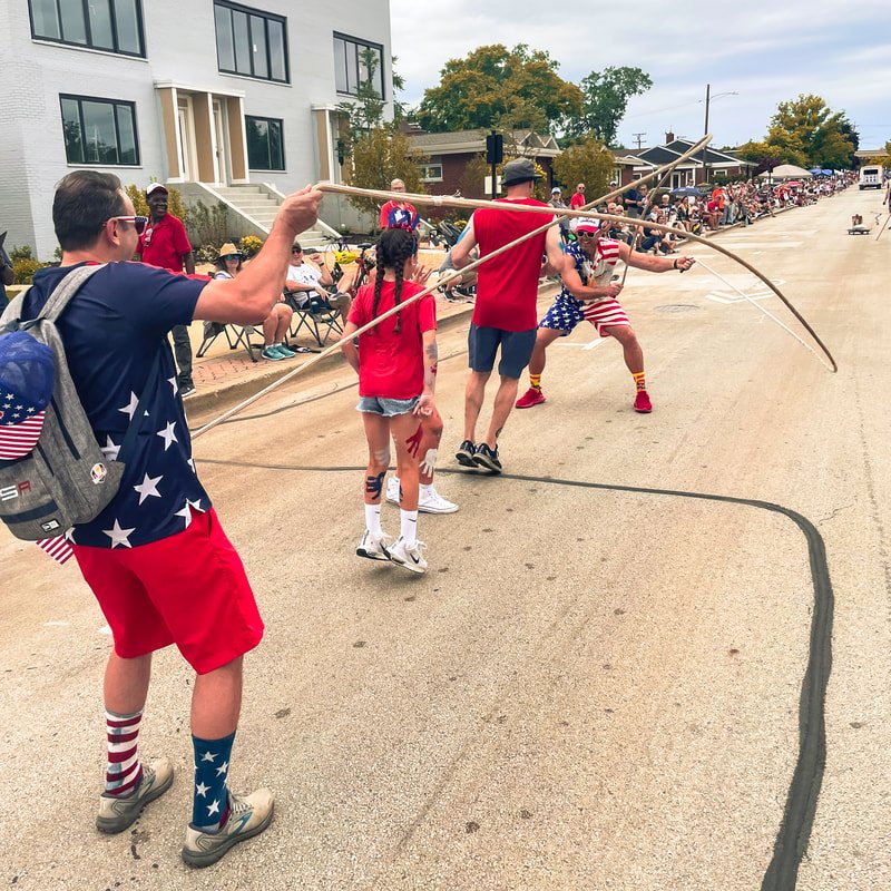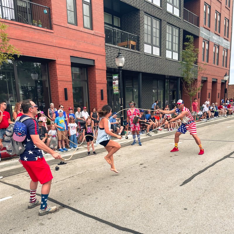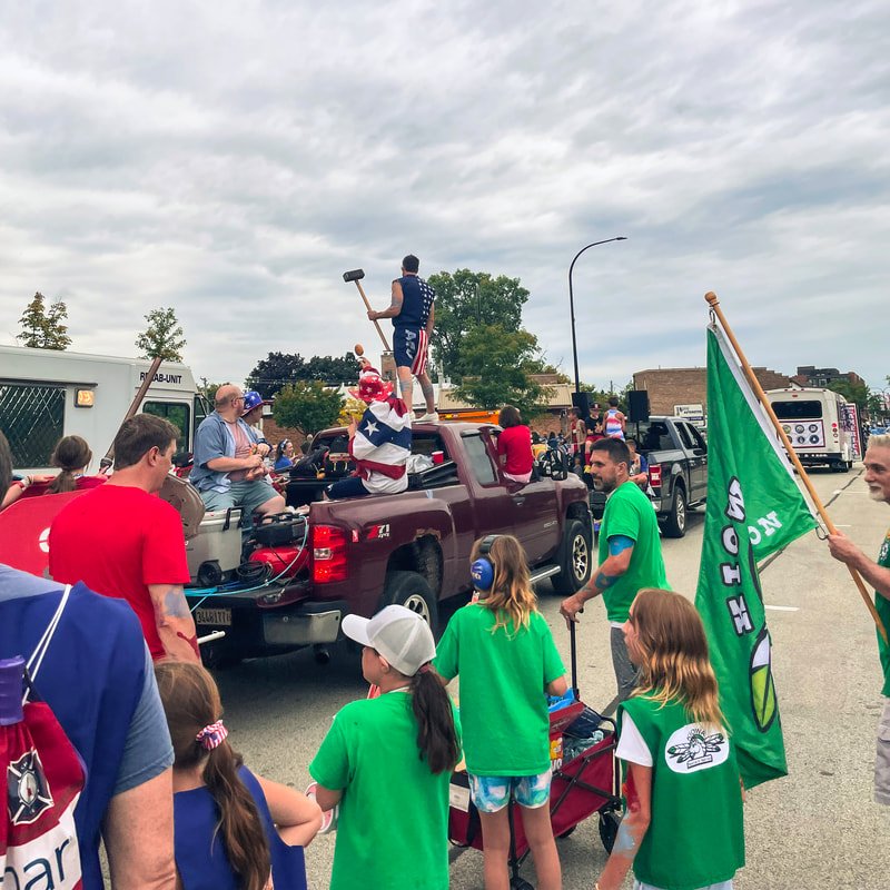 Some familiar faces were welcomed back to march with the Mountain Nation and Big Waters as a whole at the Mount Prospect Fourth of July parade. This parade was more like a circus and the daughters and dads loved doing it. The crowd cheered through confetti and t-shirts flying. Many tried a turn at jump roping while the music played. Many eyes certainly popped when they spotted a sledgehammer up on top. All together it was a fun, shenanigan-filled summer day for the group. Don’t forget to keep Saturday, August 17th open for the Mountain Nation Bike Rally. More details on that will be posted soon!