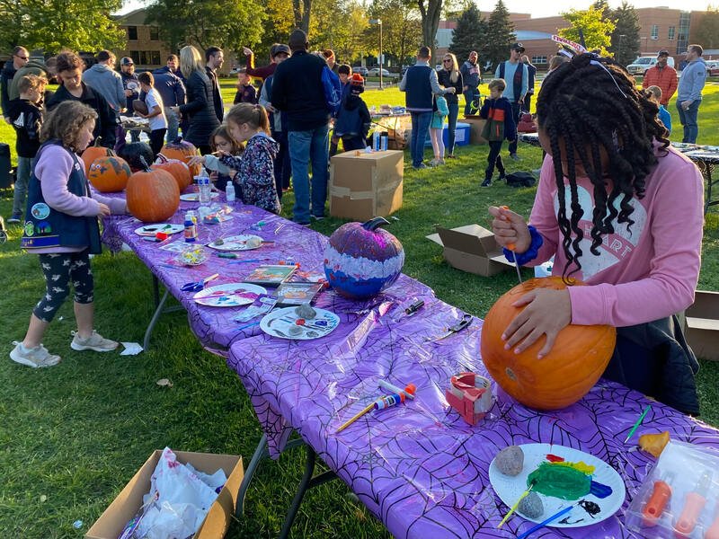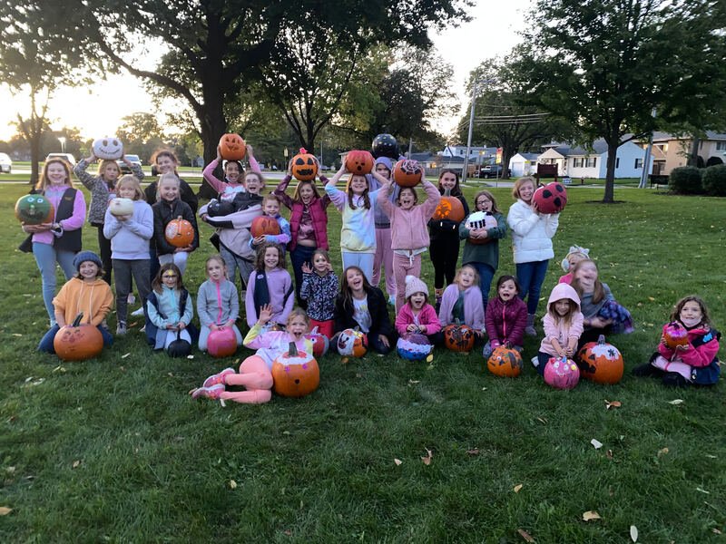 Illini Princesses and Bears Guides team up for a pumpkin decorating party