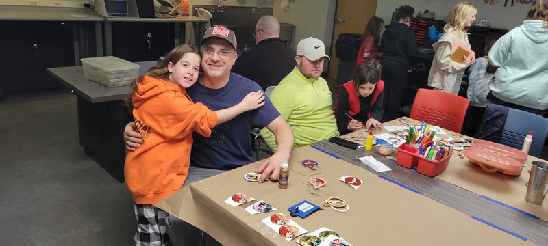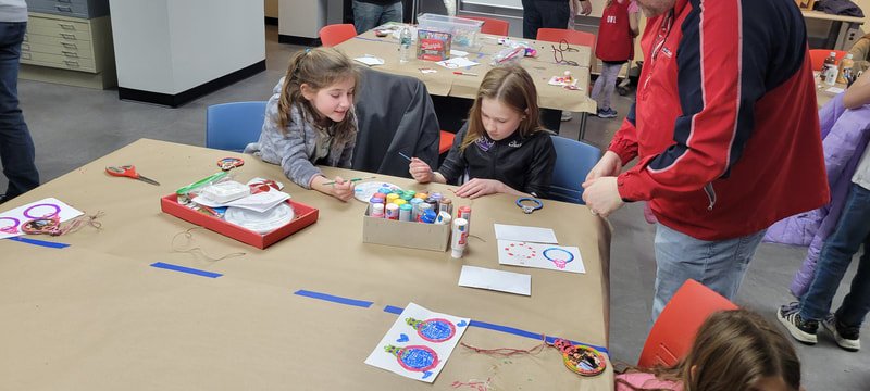 The Snow Owls met up at the AHML Makerplace for a fun afternoon of decorating holiday ornaments for the second year in a row.  Thanks to Mr. Garb for making this event happen.  The two wooden halves for the ornaments were previously laser-cut and engraved using the equipment at the Makerplace by Mr. Garb.  The girls decorated their pieces with markers, paint, and other materials, and then assembled the ornament with a printed photo of themselves.  We think they came out great!