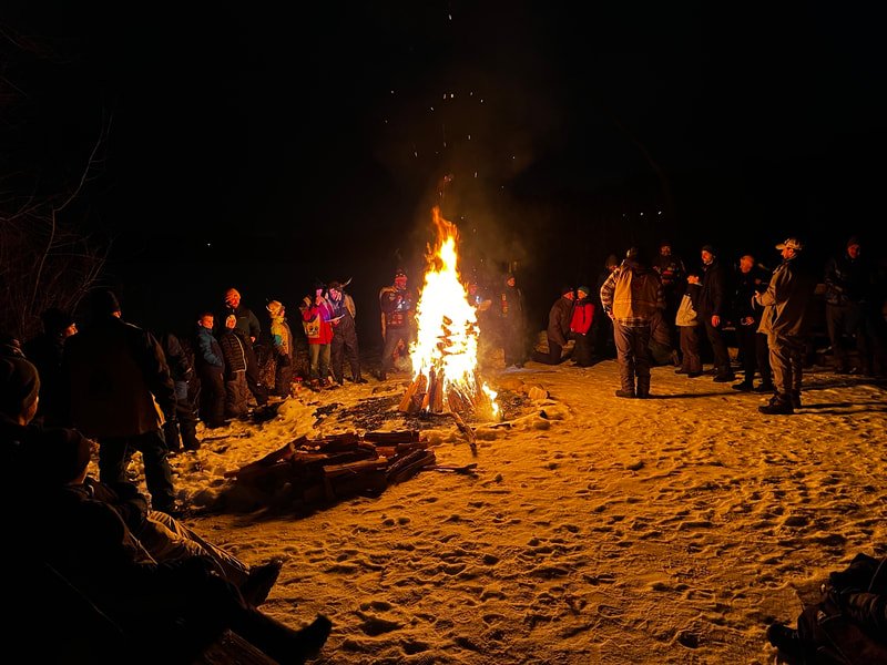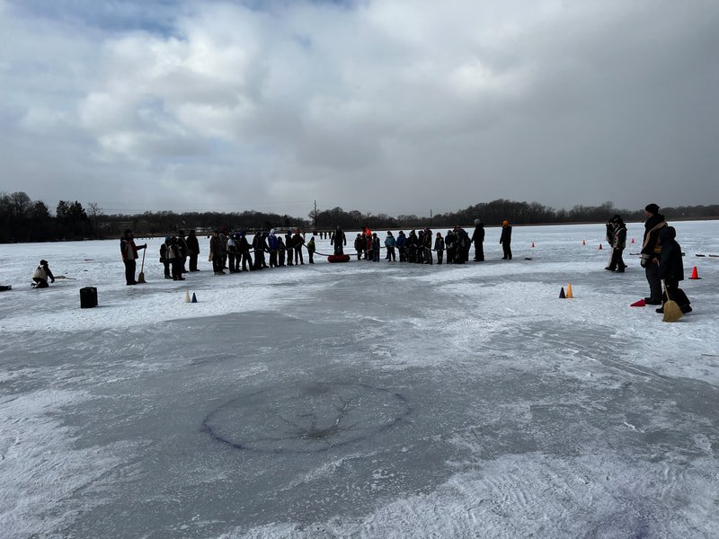 The frigid temps could not hold back the mighty Winnipeg Nation at their winter camp out at Camp MacLean in Burlington, WI. As always, we made the most of the winter weather and had a blast enjoying ourselves over the weekend, There was just enough snow to sled down the big hill. Arrows still fly far from their bows to hit their mark. But the highlight was the frozen lake to spend the day on. Ice skating & broomball were hits; but the best frozen event of the day was the soon to be Olympic sport of human-tow rope-tube-curling game proudly and loudly called ICE CHIEF CHALLENGE! Evening time brought fathers and sons together to warm themselves by roaring campfires to tell stories of the memories made this day. Pals forever!